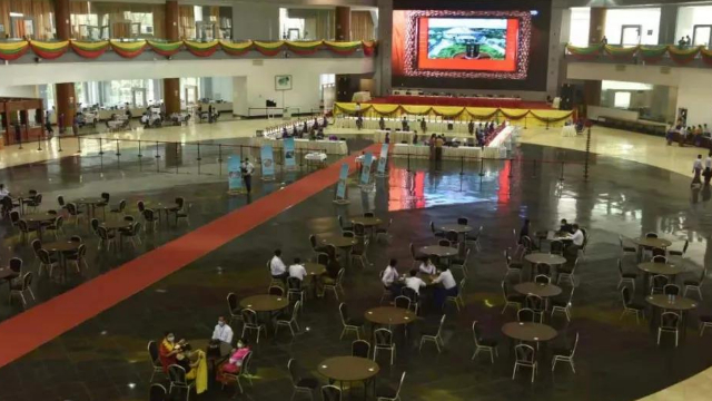 国家管理委员会主席、国防军总司令敏昂莱大将、国家管理委员会成员,以及缅甸珠宝交易会中央委员会相关负责人、缅甸中央银行行长、珠宝企业家等相关部门负责人出席交易会。