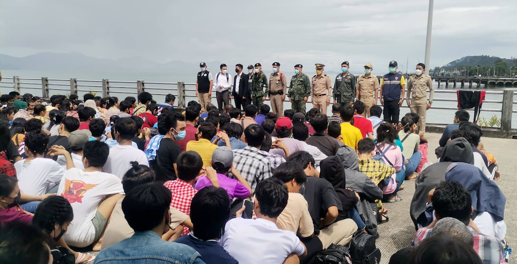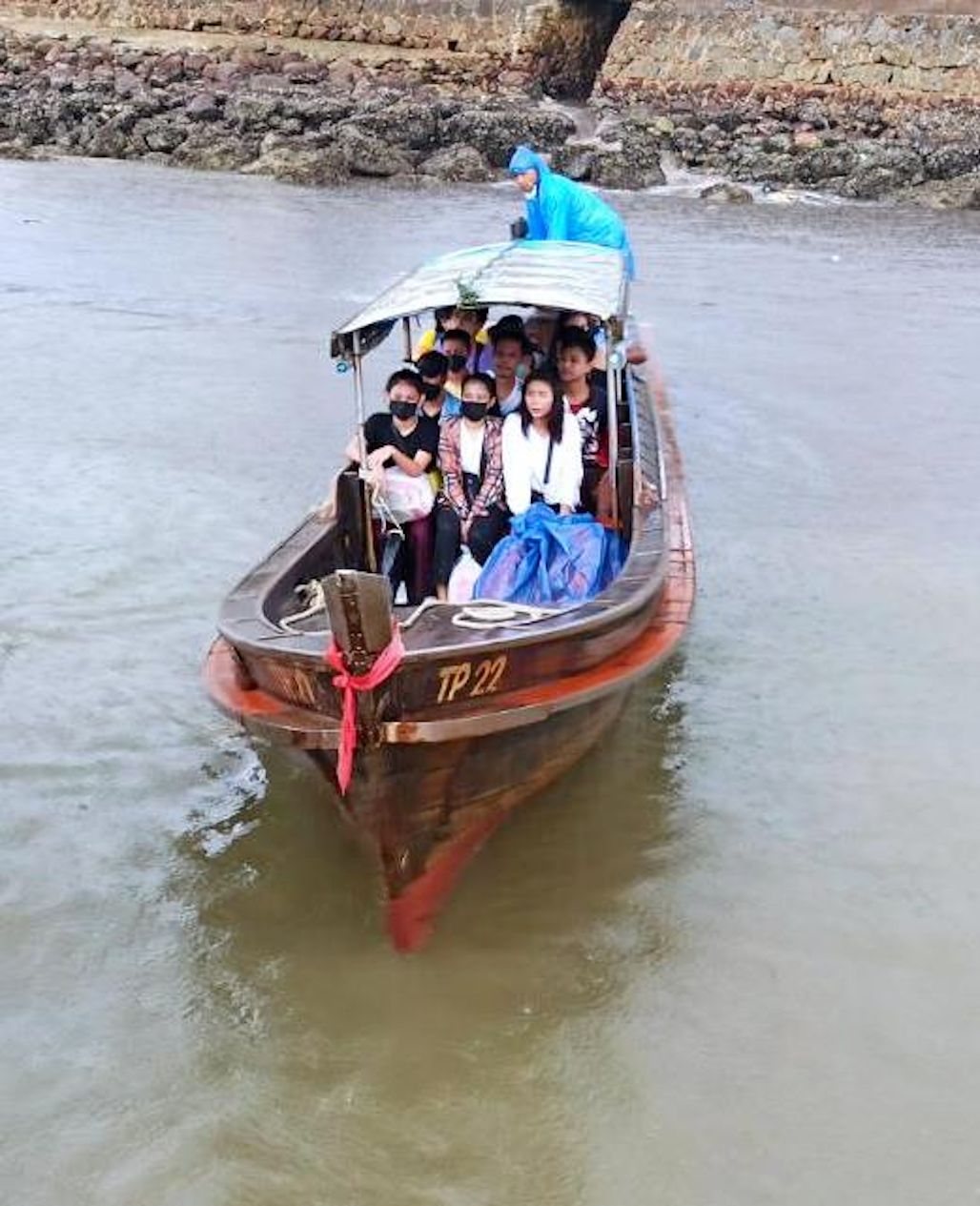 【缅甸金凤凰讯】11月21日,从泰国南部监狱获释并被驱逐出境的210名缅甸移民工人从泰国拉廊返回缅甸高当。这210名缅甸劳工经水路返回缅甸后,被高当有关部门接收,相关负责人员为他们提供健康检查和隔离场所。