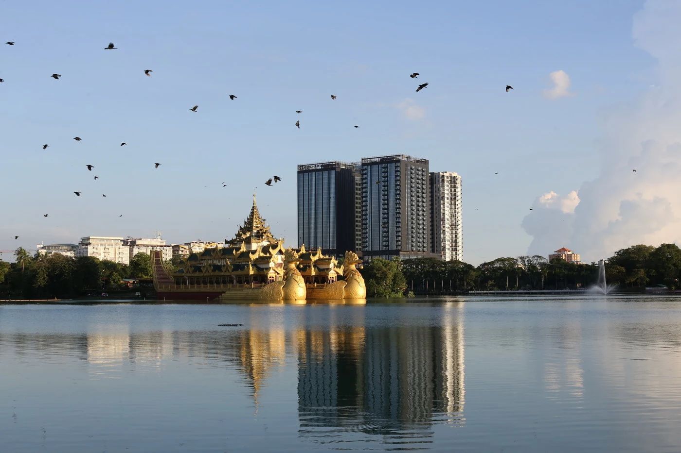 仰光的皇家湖很大,值得用双眼和双脚好好丈量和感受。起点和终点都是一点,因为仰光温德姆至尊酒店就在皇家湖畔,从酒店出发再回到酒店,刚好绕湖一圈。