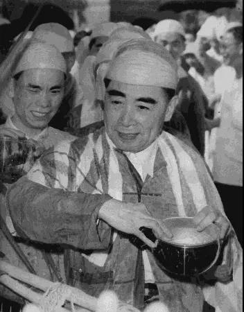 1960年4月,访缅期间身穿缅服参加泼水节的周总理