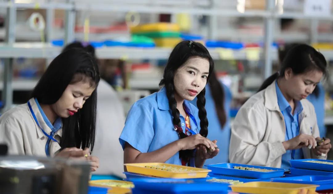 图片说明:在中国瑞丽工厂上班的缅籍工人。