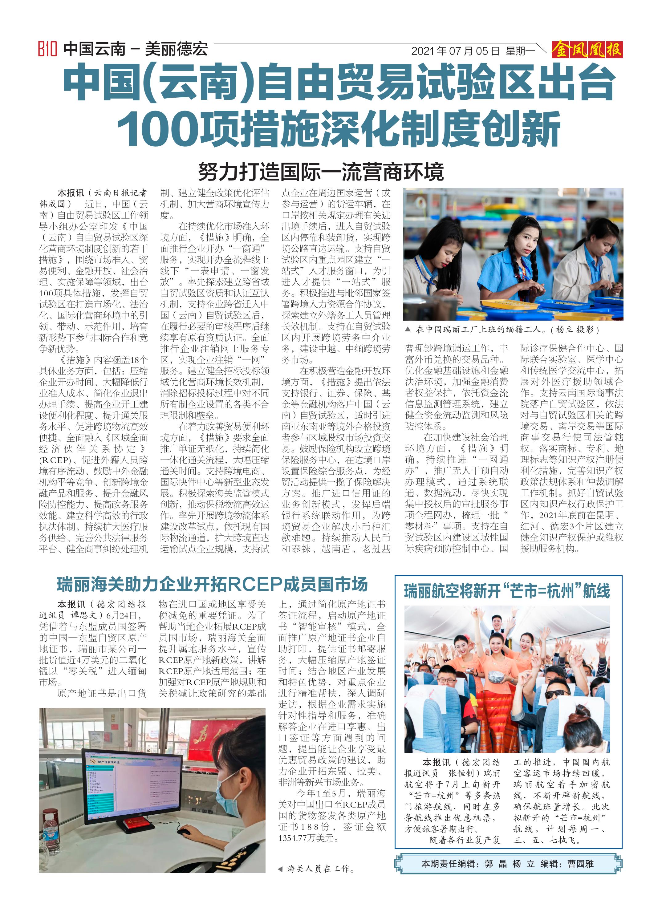中国(云南)自由贸易试验区出台100项措施深化制度创新