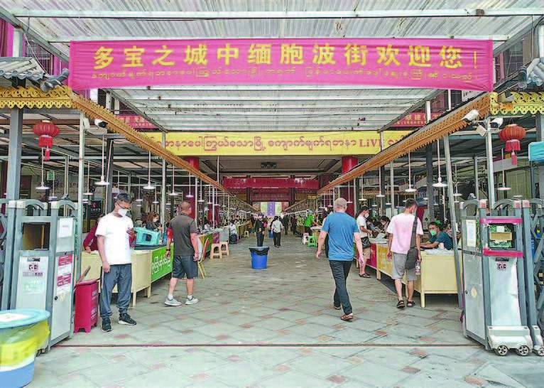 多宝之城中缅胞波街办公室工作人员杜佳磊介绍:“经相关部门审核验收后,我们的市场于4月28日上午正式营业,目前市场共有摊位829个,已租出759个。从这两天经营的情况来看,每天来摆摊的商家大概有200个左右。”为了确保整个市场在复市期间做好疫情防控工作,市场经营者严格按照市政府关于疫情防控的部署,要求商家及客户进入市场需全程规范佩戴口罩,持48小时核酸检测证明通过智慧门禁进入市场,市场内安排工作人员加强巡查巡护,进入市场的货品也必须经过消杀后才能携带进入市场。