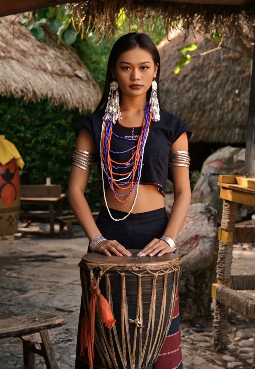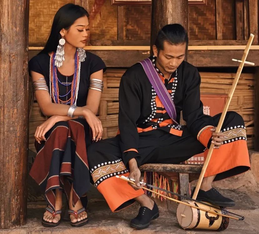 简约的服饰、单纯而庄重的黑色、热情奔放的红色,充分体现了佤族人民热情、豪放的性格。