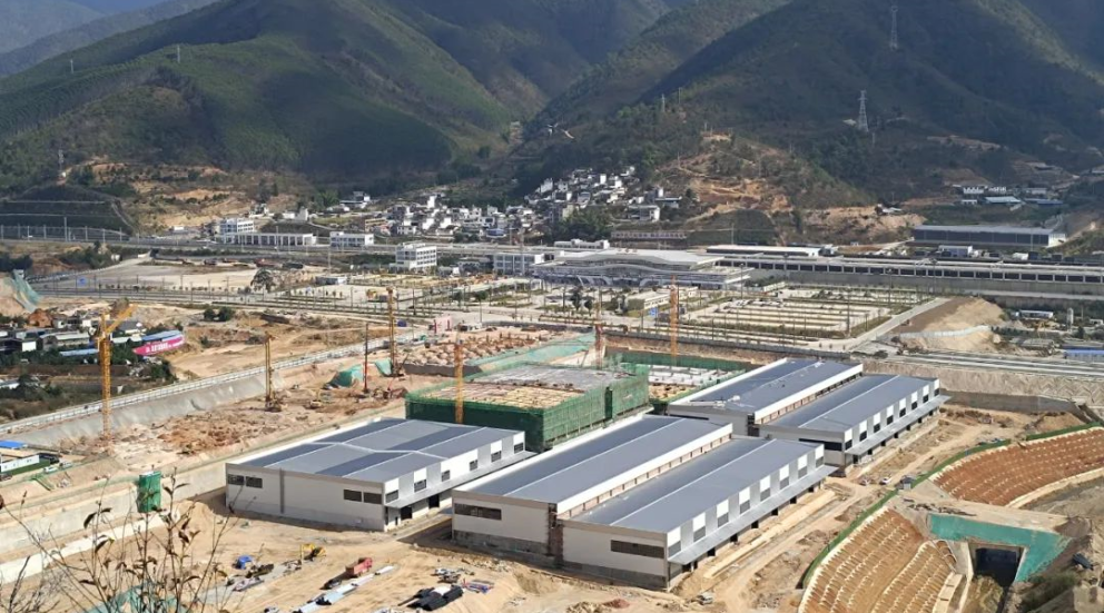 在临沧云县滇西产业园火车站物流园区的建设工地上,工程车、运料车来回穿梭,挖掘机、装载机、搅拌机、升降机忙碌作业,到处是一派繁忙的施工景象。