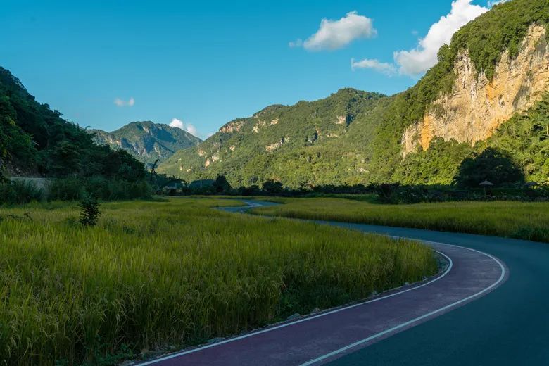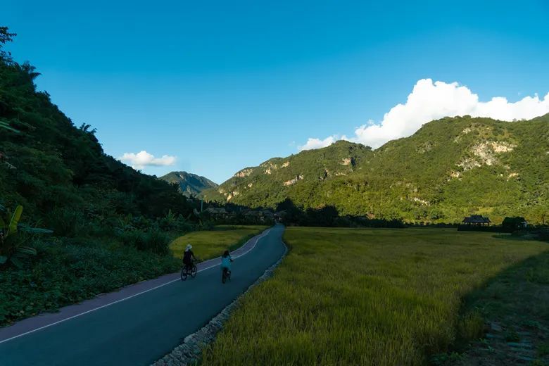 3.田间共享单车骑行。心随意动,车载我心,让心灵在美景中得到释放。