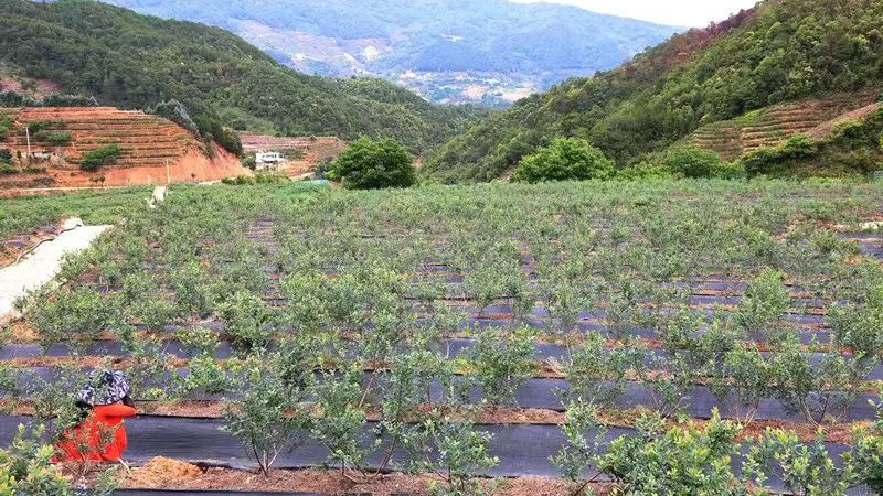 2021年,马台乡平河村在云南省公安厅的帮扶下,通过土地流转,将村里的50亩土地租赁给企业种植蓝莓,50岁的杨永良被聘到蓝莓基地里当“长工”管护蓝莓。他介绍,蓝莓基地阳光、水源充足,企业为种出品质更好的蓝莓,采用有机肥培土、覆盖地膜除草,去年第一年挂果,企业就有了12万元的收入,他领到了3万元的工资,在蓝莓地里的工作是“甜蜜”的。