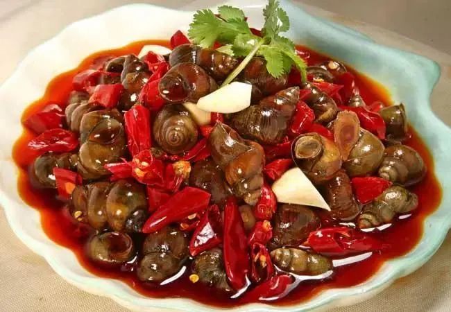 临沧的傣族都喜食田螺。先热锅,加入草果、八角、姜、蒜、小米辣、花椒等佐料翻炒,再放入洗净的螺蛳爆炒,待调料的味道与田螺的肉香充分融合,再加水煮,然后放入木姜子、阿佤芫荽等。新鲜出锅的田螺,鲜美嫩滑、麻辣爽口、回味无穷,吸食田螺是舌尖上的一门技术活。耿马、双江等夜市摊上每晚都有一群群嘬螺蛳的人。