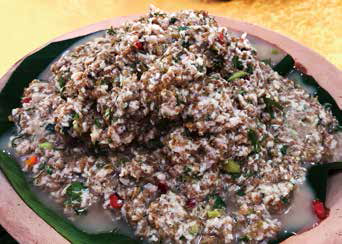 傣族也喜鱼生,傣族生活在水边,不仅善于捕鱼,而且善于吃鱼。当地傣族烹调鱼的方法可谓多种多样,除了腌酸鱼、酸笋鱼、烤鱼外,最独特的要算鱼生了。
