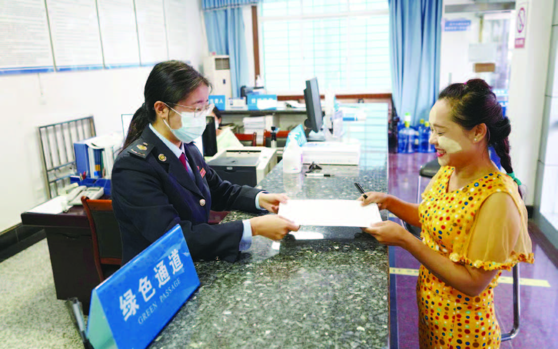中国边关名镇畹町开撒苤店的缅籍商人丹丹回缅甸棒赛探亲,中国税务部门主动与她联系,为其开设绿色通道,提供“跟踪式”办税辅导,让丹丹所能够放心回家。