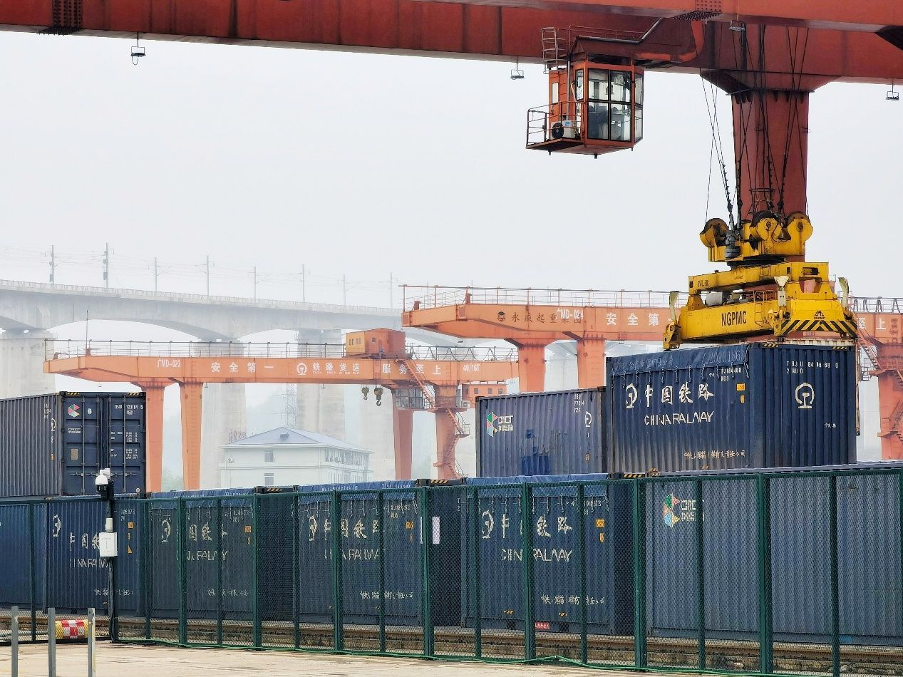 一箱箱集装箱货物装车、卸载,在国际陆港处处可以感受物流枢纽的活力。包括缅甸在内的东盟各国的矿石、农副产品以及水果等,通过陆港运抵怀化后销往中国各地,湖南产的箱包、五金工具、工程和农业机械则在此搭上前往东盟的列车。