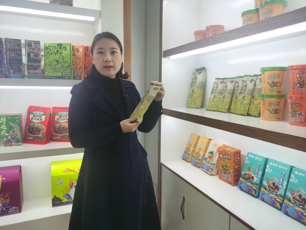 杨婧介绍销往东盟的米粉产品。向一鹏摄