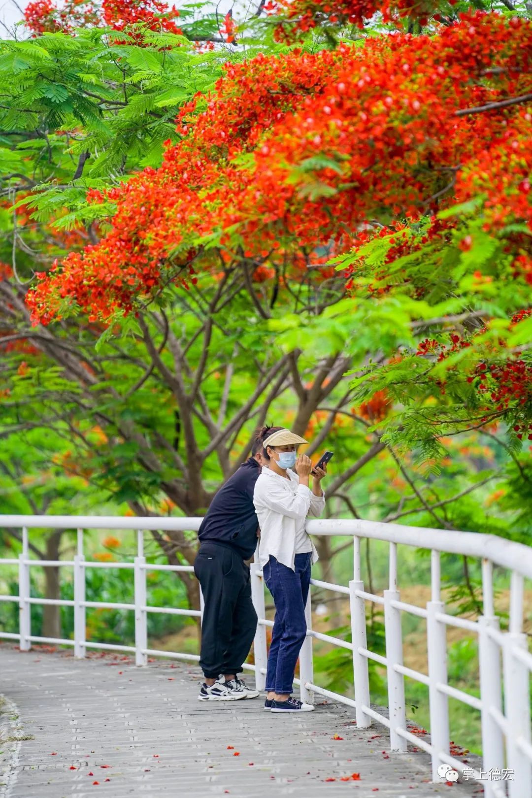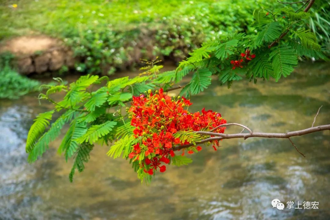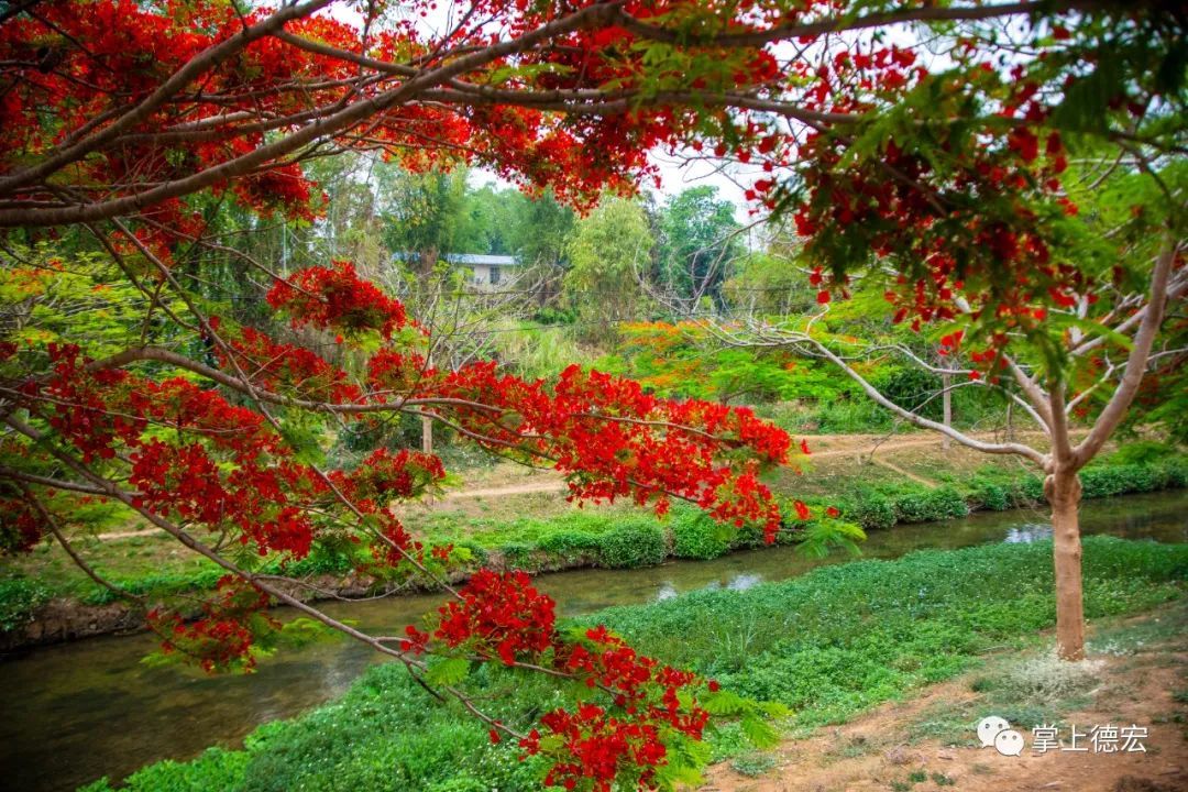 河道两旁的凤凰花