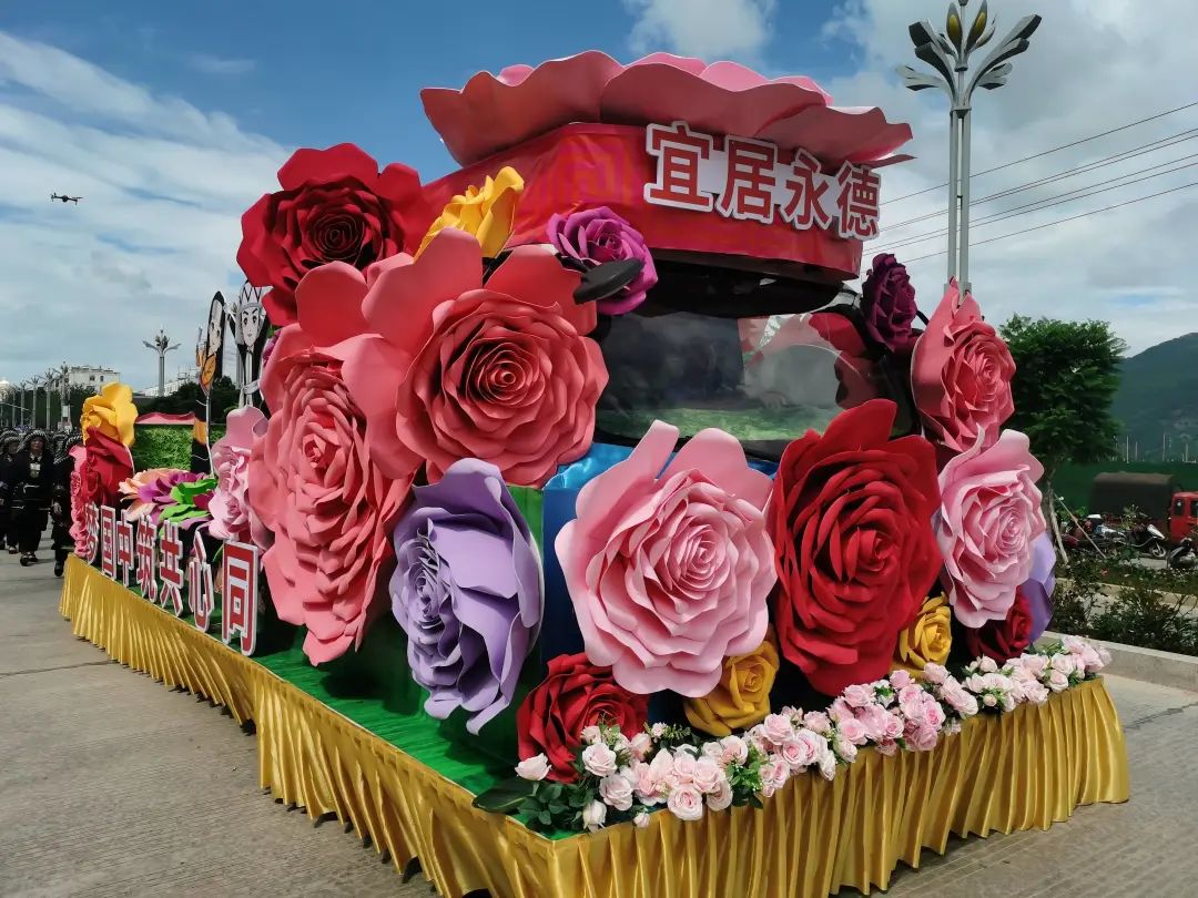 带有“宜居永德”“果香永德”的花车和各民族方队缓缓从县人民检察院开始巡游,途经县疾控中心、县人民法院、县人民政府、县客运站、县一中,到达县拓南露天体育馆,在途经县人民政府时各民族方队进行了少数民族舞蹈与打歌表演,吸引了众多市民驻足观看。