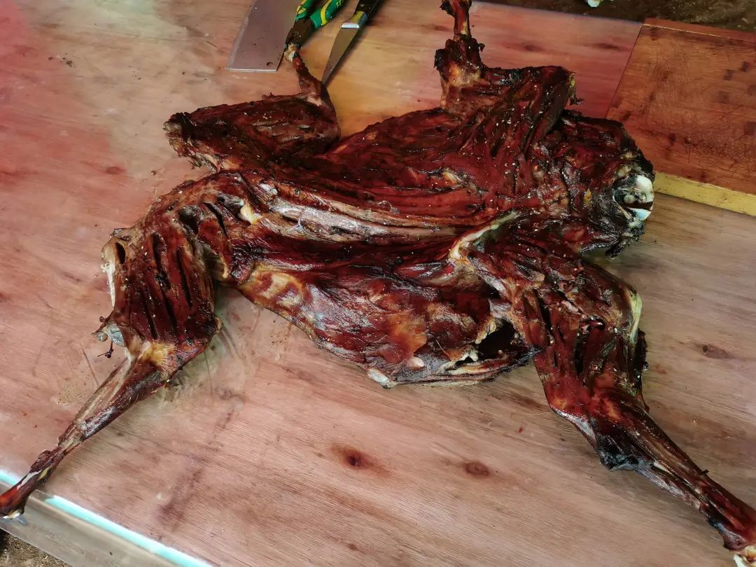“俐侎烤全羊在古法制作当中要选择我们当地的黑山羊,在选择羊的年龄中也有特别的考量,在制作过程中要用特别的彝族医用草药煮喂过以后过水,最后通过传统工艺在进行传统的烘烤,中温提色、低温入味,最后淬火提香,用这三个工艺来恢复传统俐侎人烤全羊的方式。”2023年永德芒果节暨首届灯光艺术展传统饮食文化工作组负责人朱永昌介绍说。