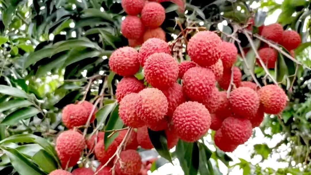 仲夏百果香,蝉鸣荔枝熟。除了果香四溢的芒果,永德县勐底农场荔枝园里的荔枝树也硕果累累,一串串红彤彤的荔枝挂满枝头,红绿相衬,交相辉映。打开新鲜荔枝红色的外壳,那半透明凝脂状的肉呈现在眼前,饱满又诱人。