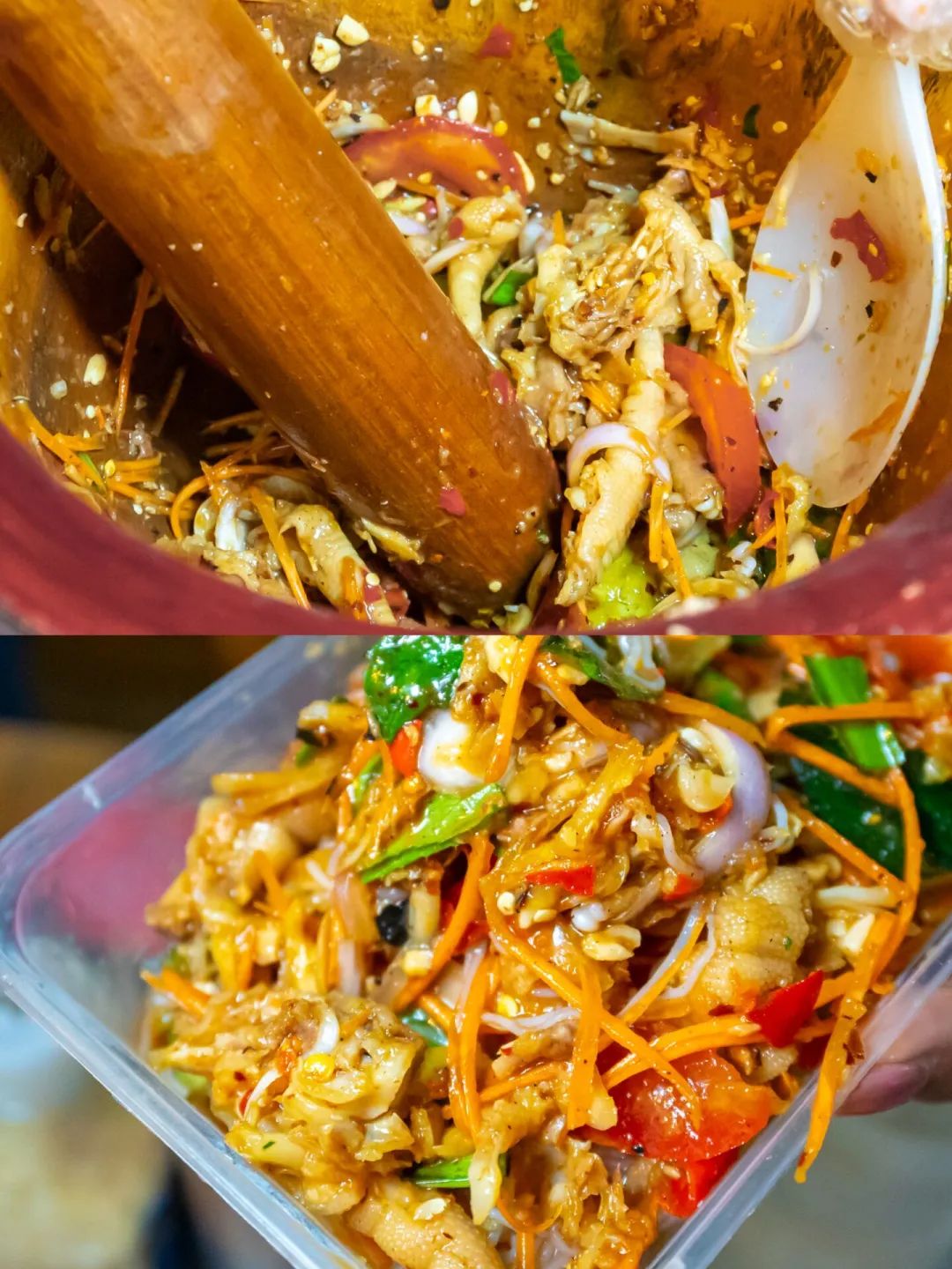 比起鸡爪的其他做法,舂的鸡爪绝对是最好吃的,调料和鸡爪舂过后,酸辣解腻,炎热的夏天,来一份舂鸡爪开开胃吧!