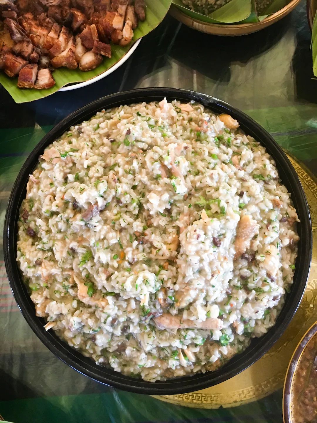佤族鸡肉烂饭,佤语叫noig ia“馍牙”,是佤族饮食文化的代表之一,沧源佤王宴的主食之一,也是佤族迎宾待客的美味佳肴,2022年,佤族鸡肉烂饭制作技艺被列入云南省第五批省级非物质文化遗产代表性项目名录。