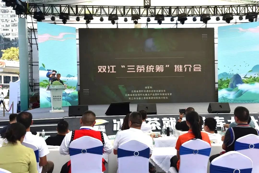9月23日下午,双江拉祜族佤族布朗族傣族自治县在昆明市南亚风情第壹城开展“三茶统筹”暨勐库冰岛古茶山茶旅研学度假区推介活动。通过双江茶文化、茶产业、茶科技的多维度推介展示,诚邀八方来客一起来寻找爱上双江的答案,一起打开双江茶香生活、开启双江的快乐之旅。