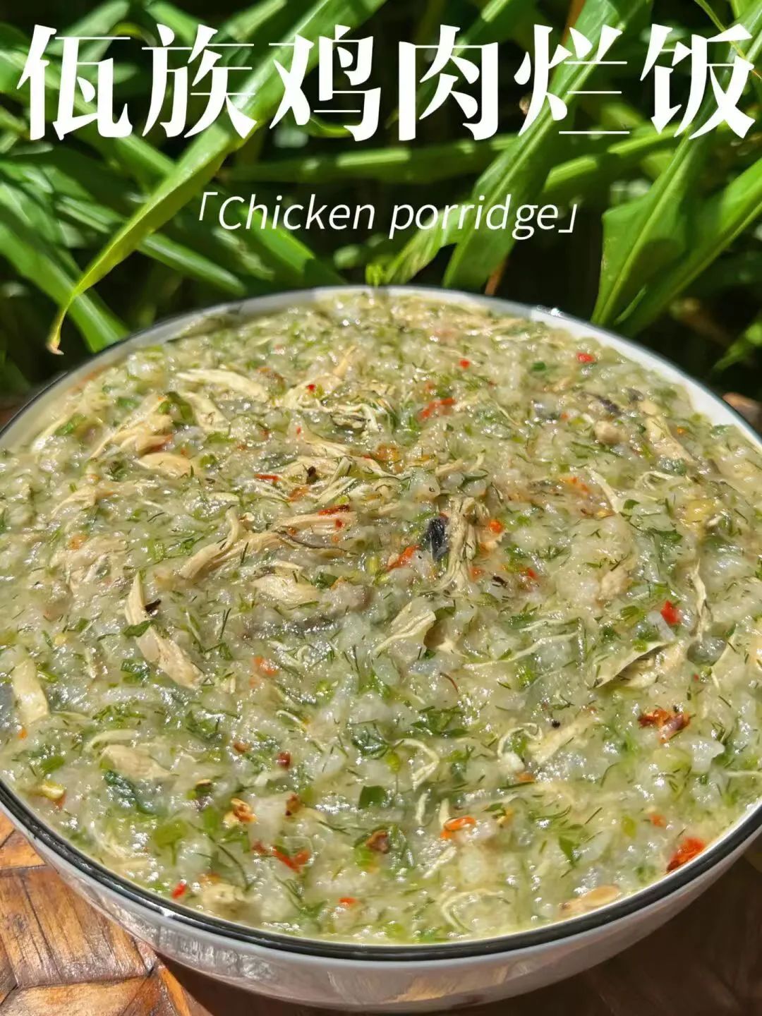 鸡肉烂饭佤族语称“馍尼亚布绕”是佤族菜谱中最著名的一道菜也是佤族待客的上等佳肴因其比粥要稠一些与经过加工的鸡肉混合故俗称鸡肉烂饭佤族鸡肉烂饭忌讳用白毛鸡煮制其既可以当菜也可以当饭吃糯滑鲜嫩香浓营养又美味。