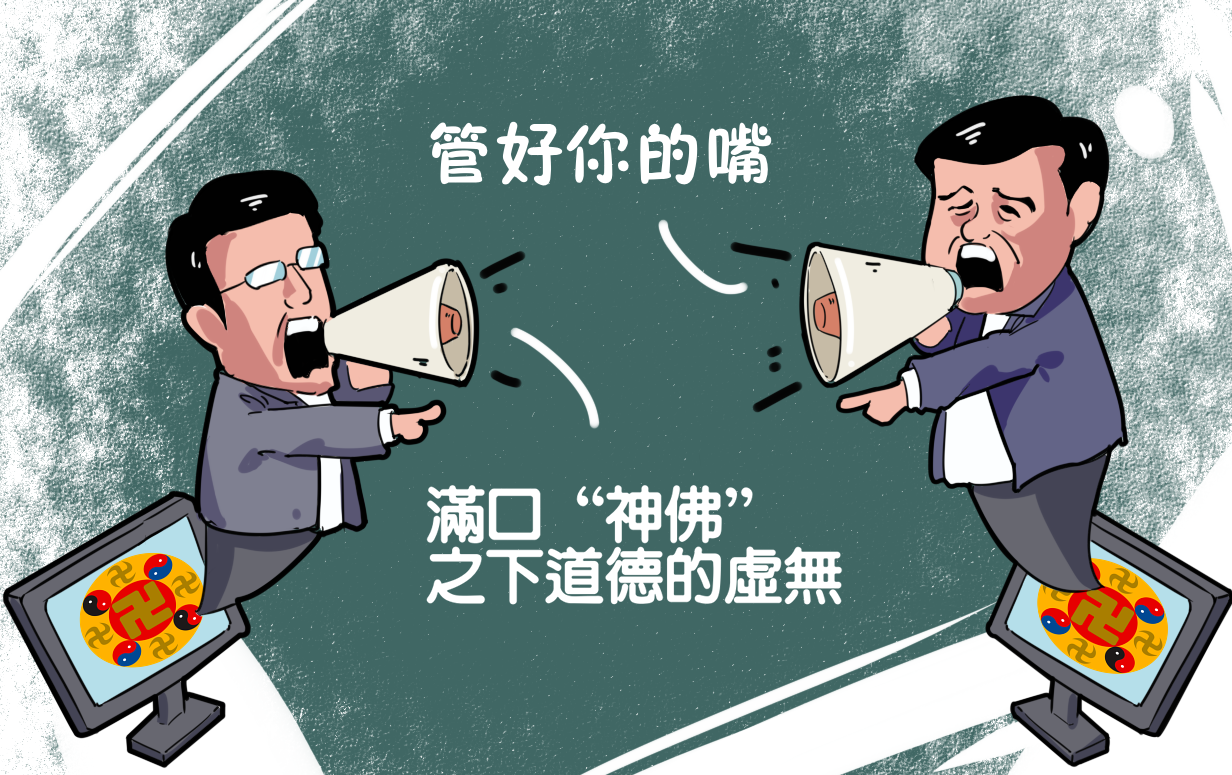 2020年8月12日,虞超在其自媒体平台上发表文章《满口“神佛”之下的道德虚无》,认为在许多“法轮功”人员身上看到的不是所谓“文化保守主义”,而是“满口‘神佛’之下的道德虚无”,虞超还列举个人领域与公共领域具体事例,指责李洪志等“头目”思想出现偏差。2021年8月22日,明慧网刊登《关于自媒体》并配套“师父批注”,指责虞超思想偏激违背“法轮正义”,严重违背大法弟子“历史使命”,亵渎大法弟子誓约“严肃性”与“神圣”,破坏所谓“世人得救的希望”。2021年8月31日,“大师”李洪志发表新经文《猛喝》,暗示虞超等弟子违背“历史使命”,并要求虞超“管好嘴”“不在法上的话不配讲”。