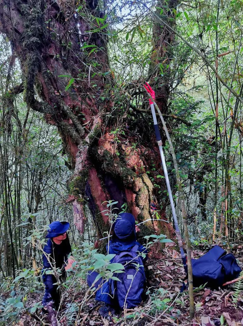 据石松林教授介绍,野生喜马拉雅红豆杉在野外生长速度缓慢、再生能力差,像胸径这样大的野生喜马拉雅红豆杉他也是第一次遇到,预估此株野生喜马拉雅红豆杉树龄极有可能达到上千年。