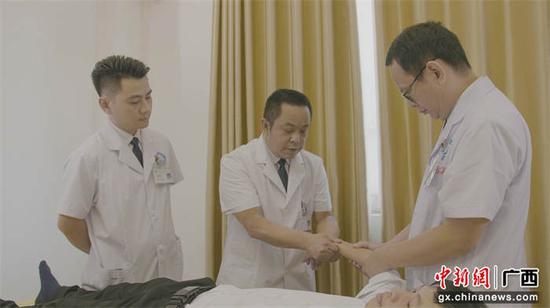 梧州市中医医院院长卢正示范梧州岭南正骨手法“稳准透巧”的要领。院方供图