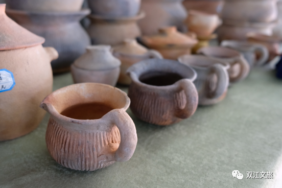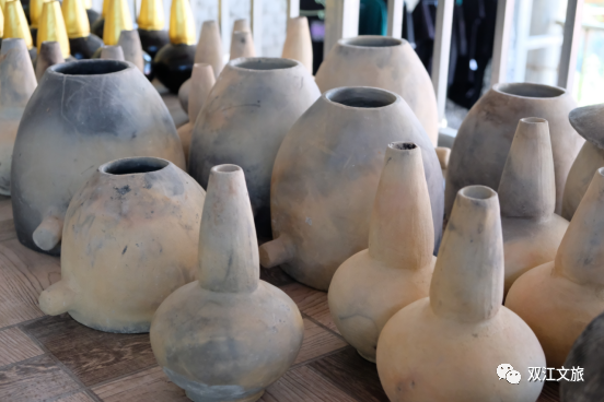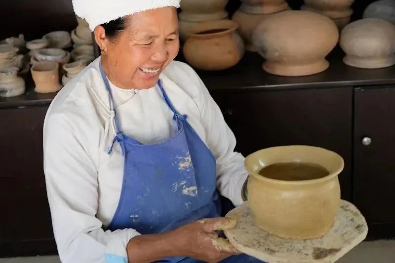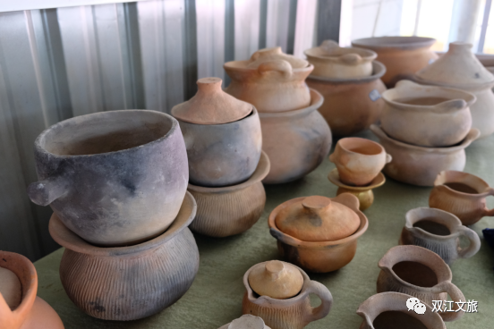 走进一家庭院,看见几位长者正娴熟地在用粘土做着最传统的傣族土陶。土陶傣语名曰“磨里”,俗称“土锅”,工艺特点为慢轮手工制作,器物表面均有被刻有纹路的木拍拍打过的印纹。其独特之处在于全用手工捏造,所制圆形器皿不用转轮,圆周精度却很高。傣族土陶的制作技术过程,充分证明了傣族制陶完整保存了远古时期的制陶技术。