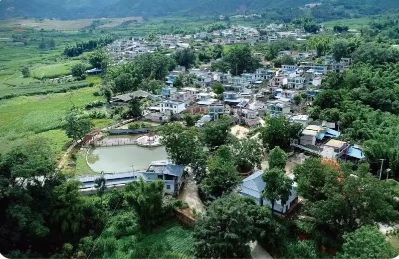 寨子里傣家民居房依山就势,分布错落有致,村落四周都是上百年古树、竹林、池塘,树影与池水相映。古树竹林、阡陌交通,鸡犬相闻,仿佛世外桃源之境。民居建筑富有地方傣族特色,房屋雕塑有孔雀,独特的自然风光与特色民居成为一道靓丽的风景。