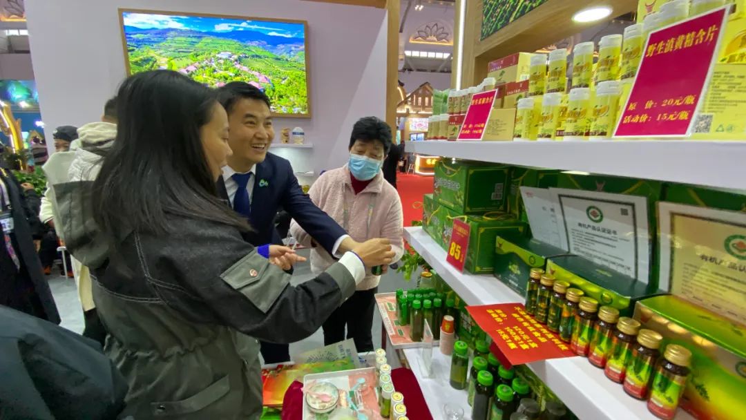 在云南昆明滇池国际会展中心举办的2023中国国际旅游交易会上,临沧主题馆内热闹非凡。永德沃森农业开发有限公司展柜上摆放的小瓶装风味苦子果、苦子果酱、核桃酱、酱香菌、中药材制品,吸引了众多市民、商家前来品尝购买,开馆当天实现销售收入1.2万元。
