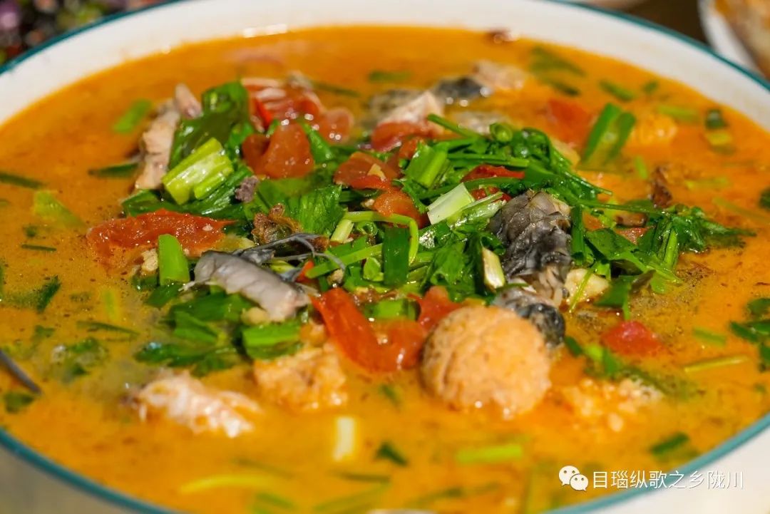 切除鱼肉后剩下的鱼骨、鱼头、鱼籽、鱼尾也不能浪费,将其油炸至金黄,加入番茄、干腌菜等配料,炖15分钟左右,一锅口齿留香的鱼骨酸汤就熬好了,味道饱满香醇,滋补鲜美。