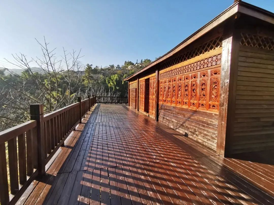 观景台靠茶山而居,伴溪水而立,是南美旅游的地标性建筑,让游客在大山的中心、以多视野的角度欣赏南美清山的美妙风光,体验“只缘身在此山中”的意境。其以传播拉祜文化为主,不仅主体建筑冠以拉祜风格,就连亭顶、亭身和平台护栏均刻有拉祜风俗民情的壁画、传说等图文,游客在欣赏风景的同时,亦能感受拉祜文化底蕴。