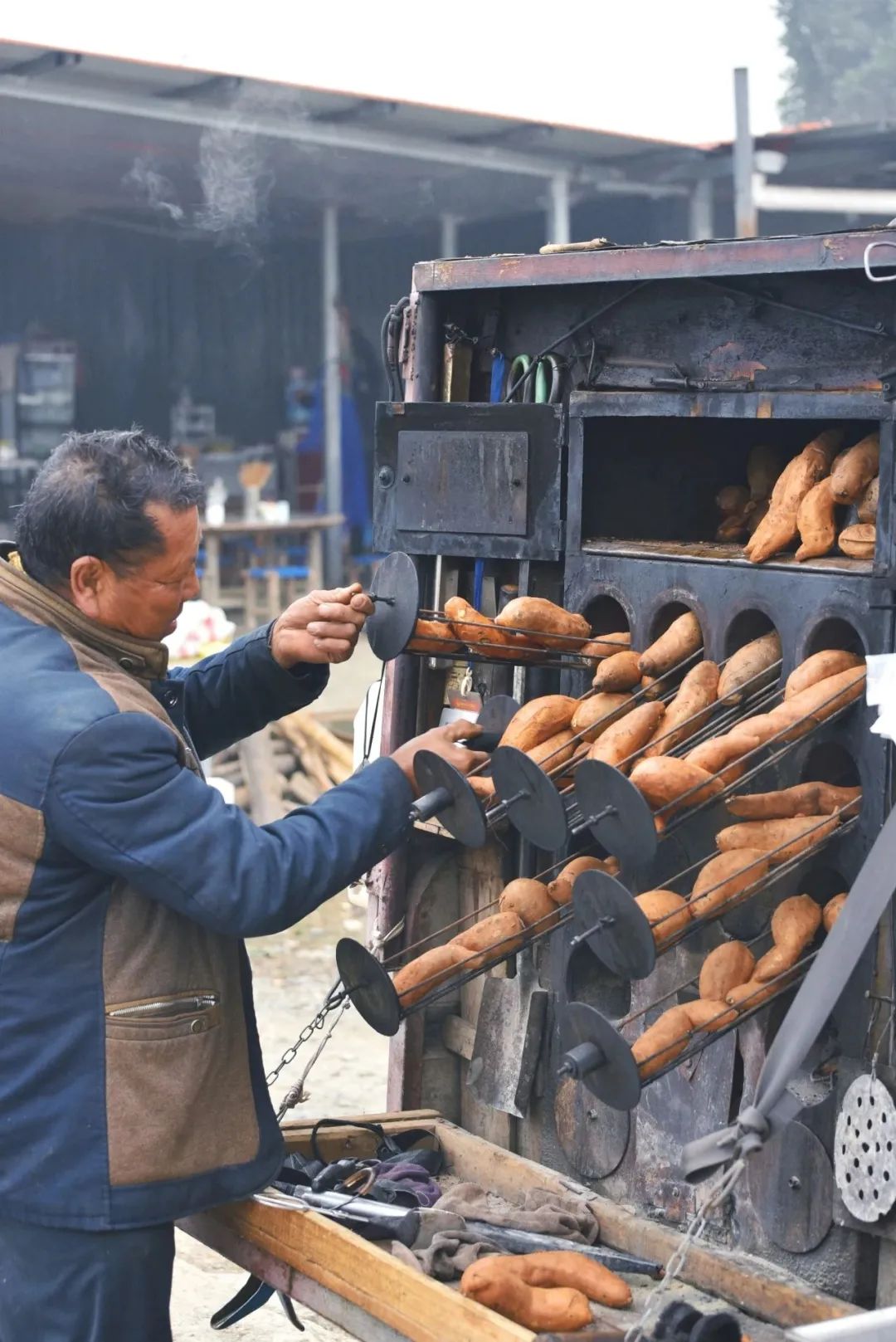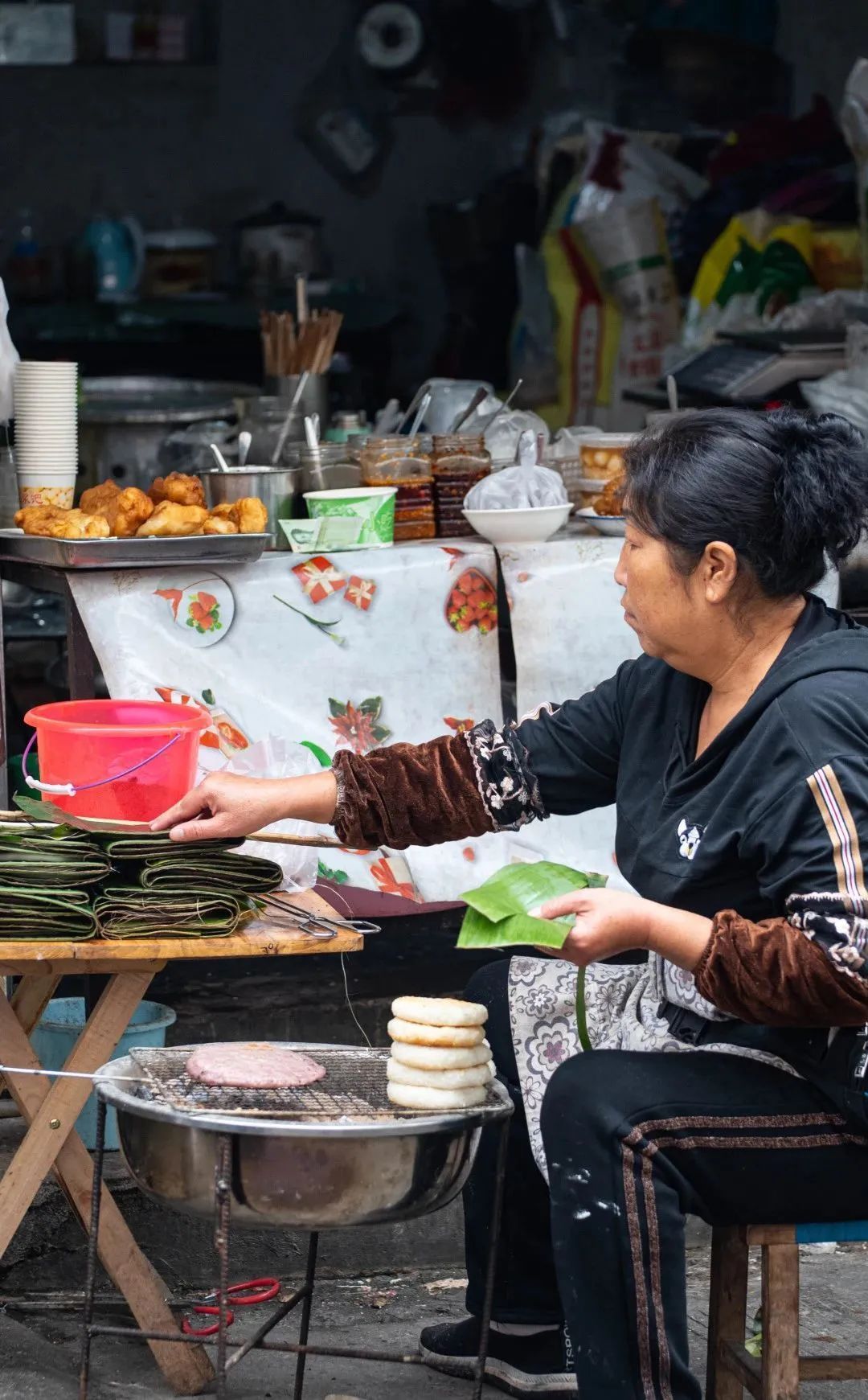 清晨,街边老式炉子旁