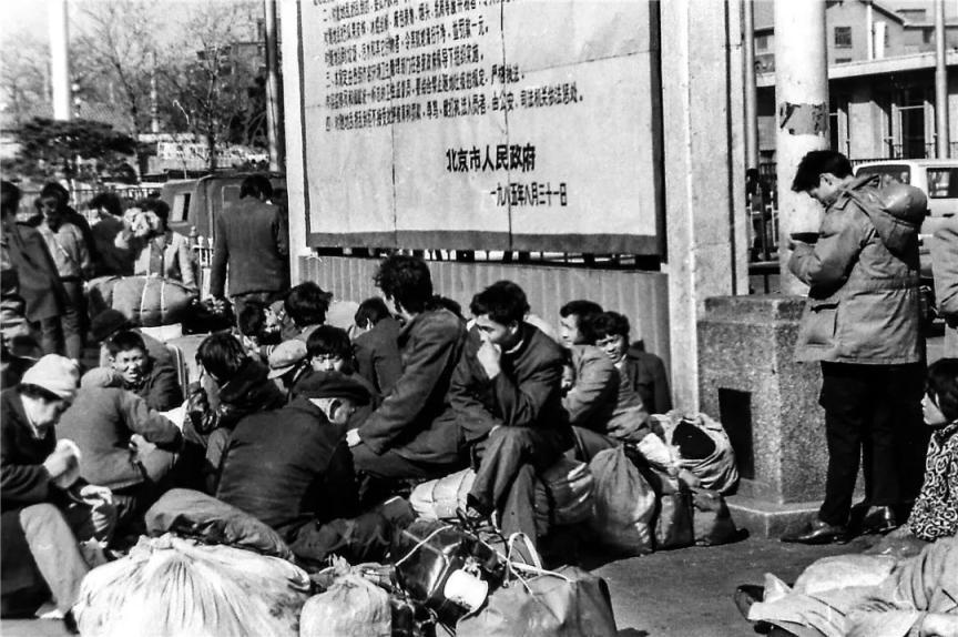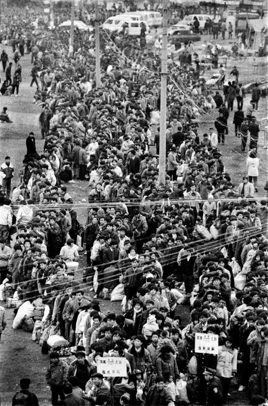 1987年春运,北京,等车的返乡农民工。工人日报记者 许之丰 摄