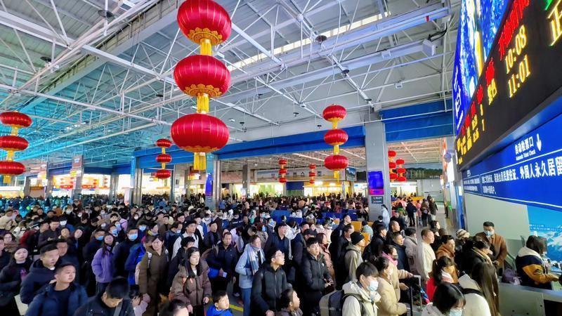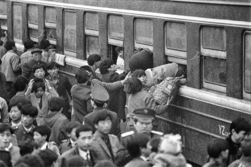 1993年春节后,在安徽阜阳火车站,大量民工乘坐火车外出打工。工人日报记者 于文国 摄
