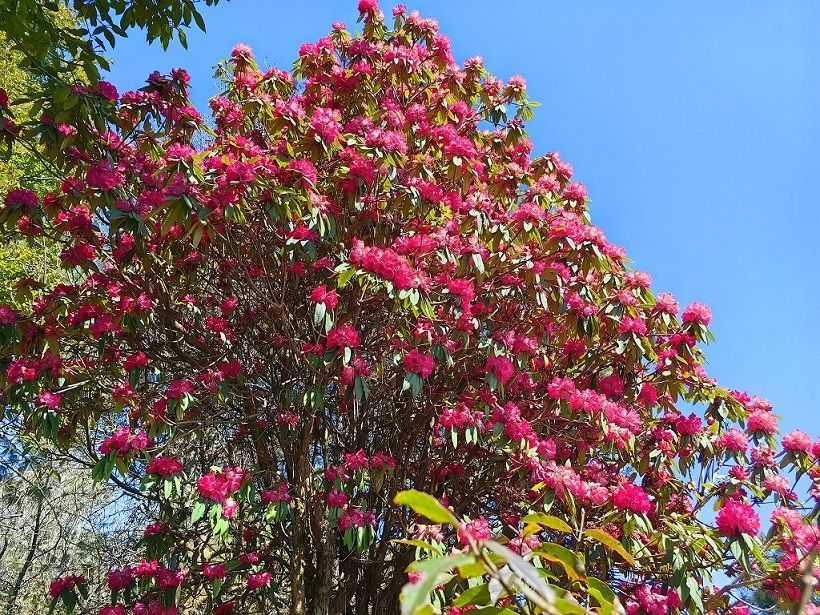 绽放的马缨花,相比于受人眷顾的樱花的桃粉、油菜花的灿烂、梨花的清亮,更多了一份野性与炙热。置身马缨花丛中,一睁眼就是夺目的妖娆,一回首便是抓拍的瞬间。近期,前来赏花的游客越来越多,当地的农家乐与蜂蜜、土鸡蛋等土特产品也打开了销路,让村民们真正享受到“绿水青山就是金山银山”带来的好处。