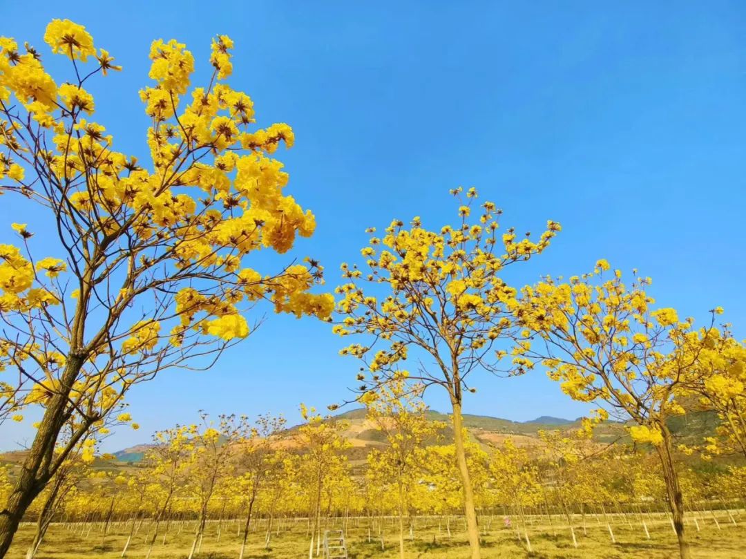 进入春天以后,位于临沧市云县大宇种养殖民族和谐广场百亩黄花风铃木随着春风习习,花开正盛,吸引了不少爱花人士和短视频、摄影爱好者前往拍摄打卡,体会金色烂漫。