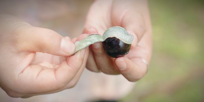 随手摘一个嘉宝果,撕开外皮,里面的果肉晶莹剔透,一口咬下去,柔软细嫩,风味特别,香甜可口。细细品味,还真能在一颗果子中尝到山竹、芭乐、释迦、凤梨四种水果风味,嘉宝果也因此有“果中珍品、一果四味”的美誉。