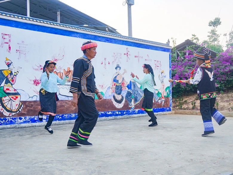 在这个村寨,每位村民都是一位艺术家,他们的舞蹈、音乐和手工艺品都洋溢着浓厚的民族特色和艺术魅力。尤其是流传了数百年的民间舞蹈《十六跺》,舞步以踢脚、踏脚、跺脚为主,间或穿插撩腿、吸腿、勾腿、打脚等动作,简洁、形象、直接地展现了彝寨人民的劳动生活场景和思想情感,将彝族人民的豪迈和热情展现得淋漓尽致。