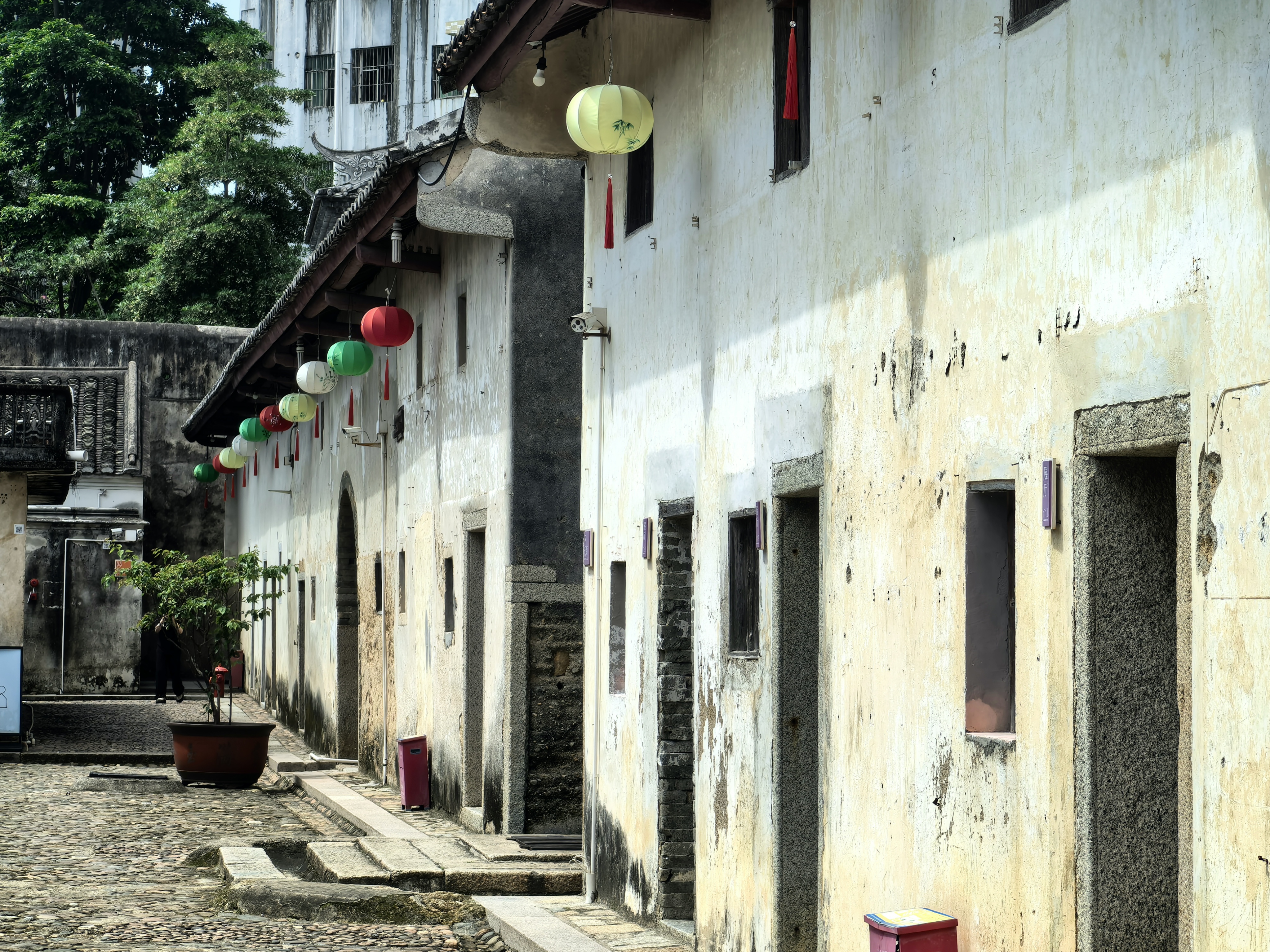 踏足大万世居的那一刻,古朴的气息扑面而来。青石板路,斑驳的墙壁,四角高耸的炮楼,都在诉说着一段段古老的往事,置身其中的旅客,仿佛穿越了时光的隧道,步入了历史深处,与客家人的过往岁月相遇,与曾经生活在这里的客家人一同生活,一同劳作。