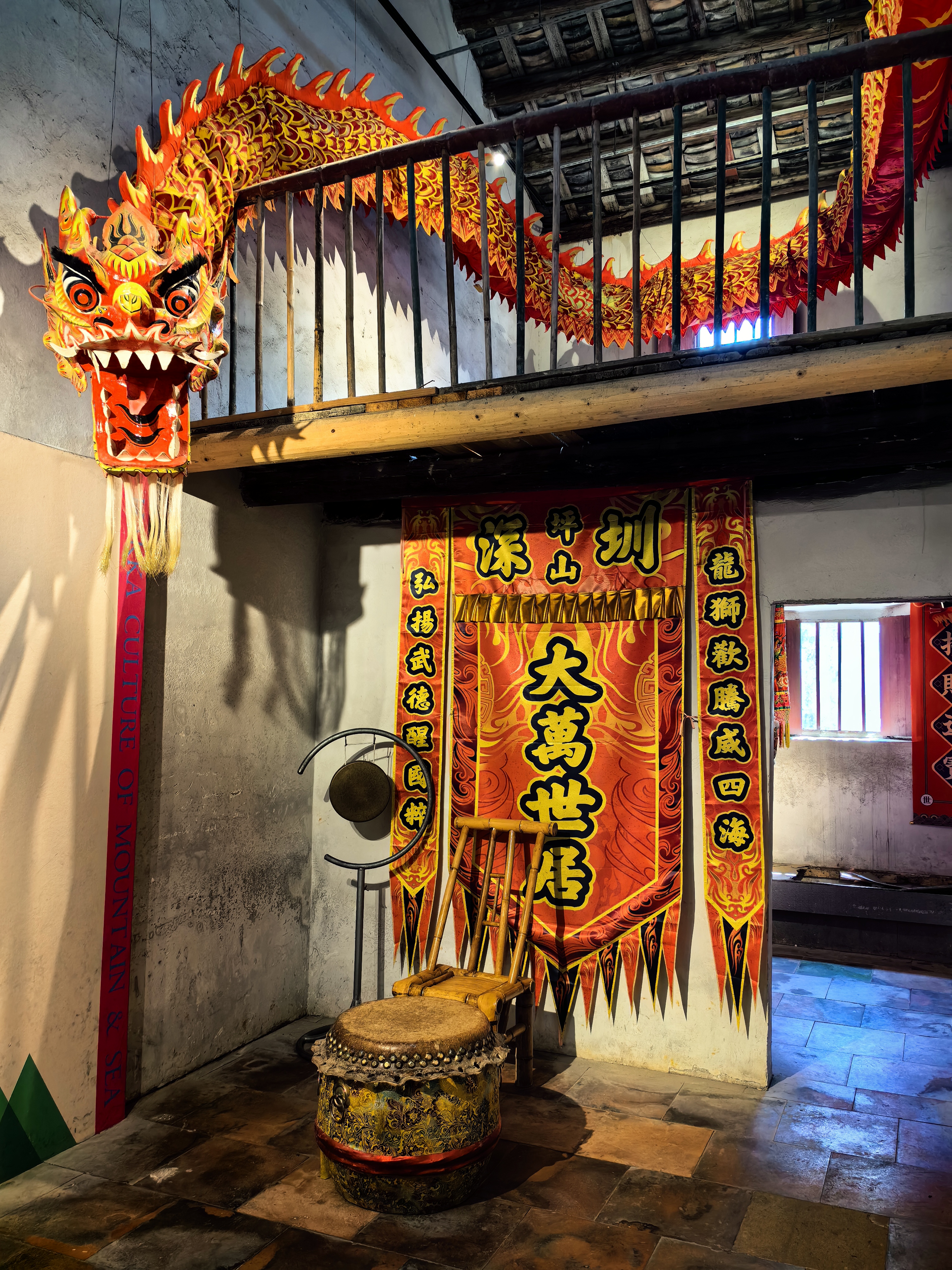 然而,大万世居的魅力远不止于此。这里的生活气息和文化底蕴更是让人陶醉。虽然围屋早日没有往日的喧闹,但留存下来的这里的人们的传统生活方式依稀可辨。舞火龙、打斗叙、油纸伞……客家人悠久且独特的文化让这座围屋充满了历史的底蕴,留住了客家人的根和魂。