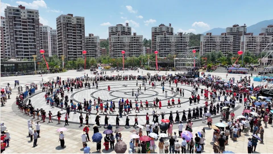 各族群众身着节日盛装,纷纷聚集到勐相湿地公园广场,伴随着欢快的旋律,迈着轻快的舞步,脸上洋溢着欢乐的笑容,围成圈打歌狂欢,载歌载舞庆祝青苗佳节。