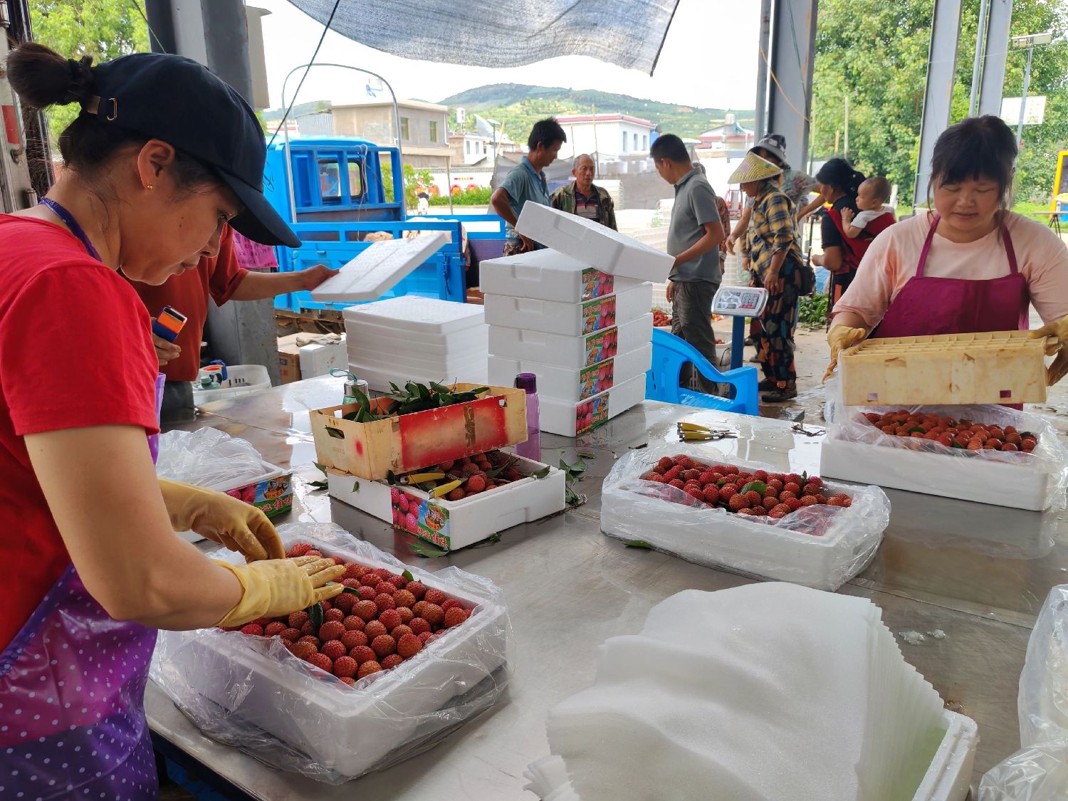 7月,又到了荔枝成熟的季节。走进永德县勐底农场白塔社区农产品交易中心,刚采摘下来的荔枝堆成了“小山”,工人们正忙着进行分拣、打包、装箱,这些包装好的荔枝将通过冷链运输车运往全国各地,让五湖四海的消费者尝到最新鲜的永德荔枝。