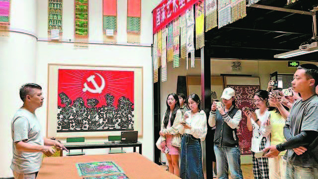 《德宏团结报》报道,在芒市,采访团先后到德宏师专傣族剪纸传习馆、德凤茶庄酸茶体验馆、德宏芒市机场等地参观采访,了解傣族剪纸技艺的传承与创新、德昂族酸茶技艺的传承与发展以及航空口岸国际客货运通关情况。