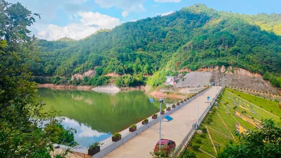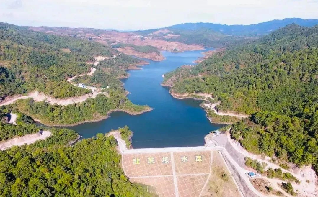 韭菜坝水库作为绿美河湖建设示范点,结合韭菜坝水库大坝坝体、溢洪道等主要水利工程的观光游览功能,形成集水工观光、景观游赏等于一体的水利文化展示区。同时,对水库岸线绿化美化、见缝插绿、留白增绿,对水文化专题景观、水资源保护意识进行宣传建设。