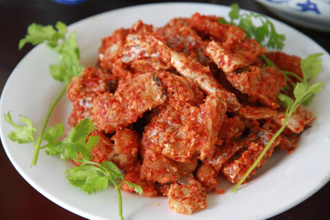 2、做法:将新鲜的活鱼用白沙井水洗干净;将洗净的鱼去鳞片、剪去鳍,再次用白沙井水清洗干净;将鱼从脊背剖开、去头、尾、肠肚内脏,鱼肉切小块,放入烧酒、盐拌匀,腌制半天;将腌制过的鱼沥水,并用冷饭拌勾放入坛罐腌;第三次将鱼上的发酵米饭抖掉后,加入辣椒粉、本地花椒粉、生蒜泥和盐拌匀放入坛中,并在坛子顶部放入新鲜花椒叶以起到保鲜作用。