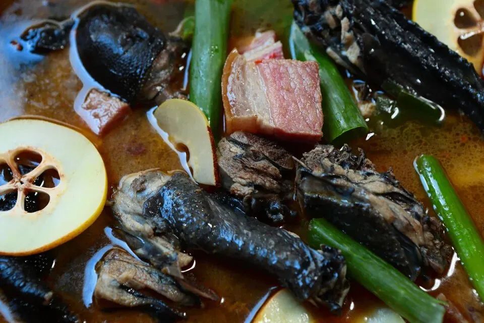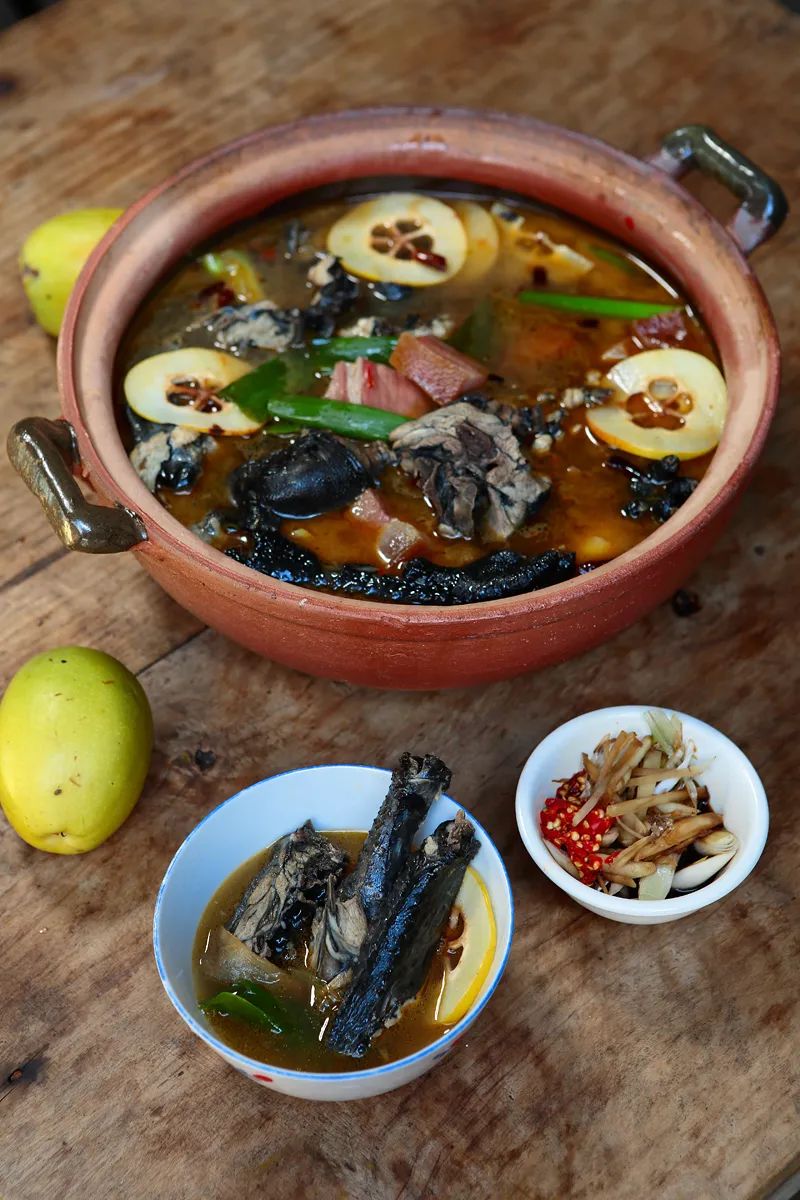 “云县火腿木瓜鸡”是临沧市云县传承发展的一道名菜。通常精选腊肉火腿、散养土鸡为主料,以藤子木瓜、葱、姜、蒜、八角、草果、小米辣等辅料制作而成,其味酸辣适度,香气怡人,既有口感高度,还是一道保健菜谱,有舒经活络、祛风除湿的作用,品尝之后令人回味。