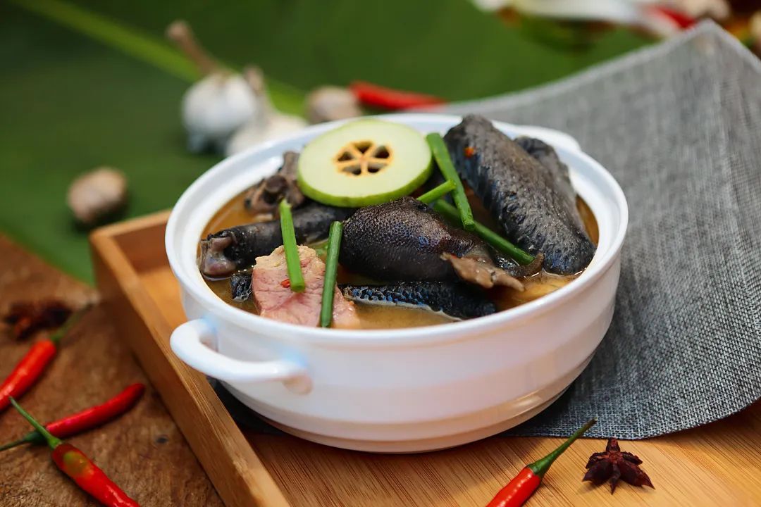 过不多时,酸木瓜入味,一股香酸的味道散发开来,当揭开锅盖,那色泽金黄、香气四溢的火腿木瓜鸡呈现了出来,加入大葱即可捞出食用。这时的鸡肉鲜嫩多汁,火腿的咸香与木瓜鸡的鲜美完美融合,每一口都让人回味无穷。