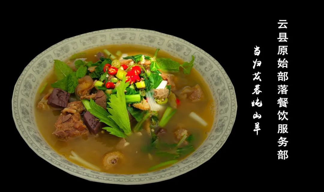 “当归苁蓉炖山羊”一直是临沧市云县的名菜。菜品选用生长在高海拔地区,吃野草和野生中药材三岁以上的新鲜黑山羊肉为主要食材,当归、苁蓉为辅助药膳,经木柴火、大铁锅高温煎炒,玉米纯粮酿造的高度白酒发火烹制而成。菜品前后一共炖煮3小时,羊肉扒而不烂富有嚼劲,当归和苁蓉药效达到最佳效果。