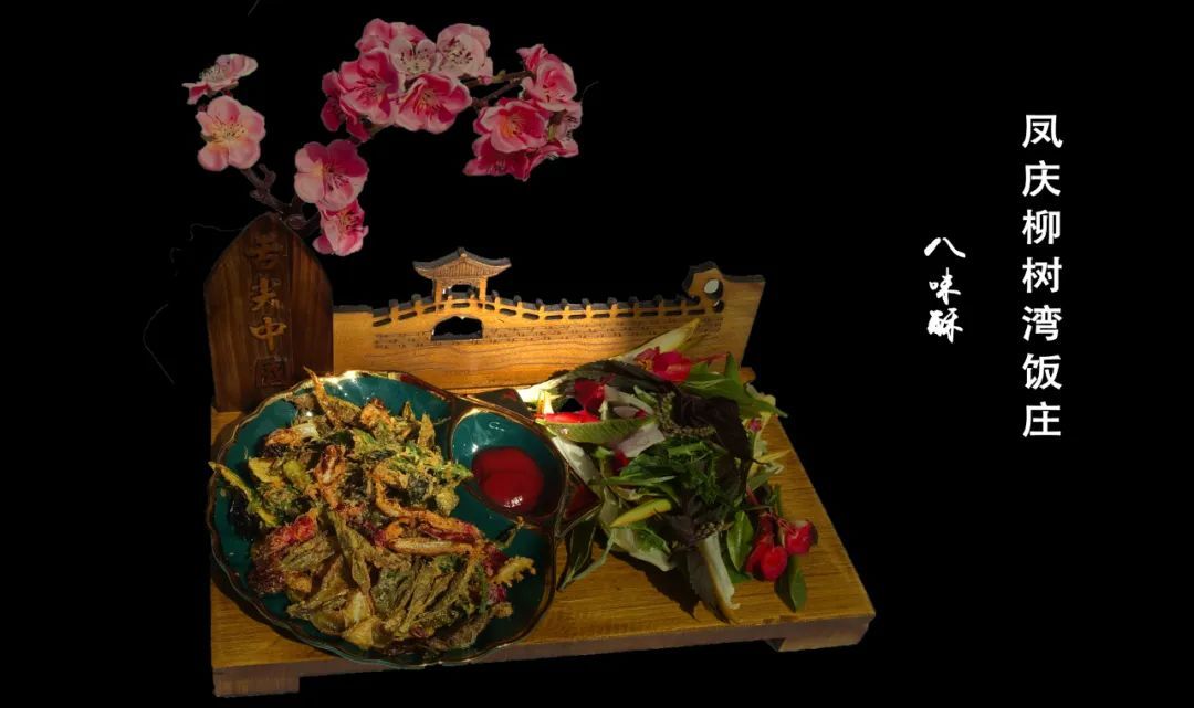 这道佳肴分别选用四种鲜花,四种叶子进行制作。常规菜品原料有苏子叶,番石榴叶,刺五加叶,茶叶,玫瑰花,百香果花,大叶海棠花,鸡蛋,面粉(在保证可食用的同时,皆有药用价值,菜品原料可随季节更替选用)其功效有益气健脾,补肾安神,柔肝醒胃,舒气活血,清热解毒,美容养颜,助于睡眠等。